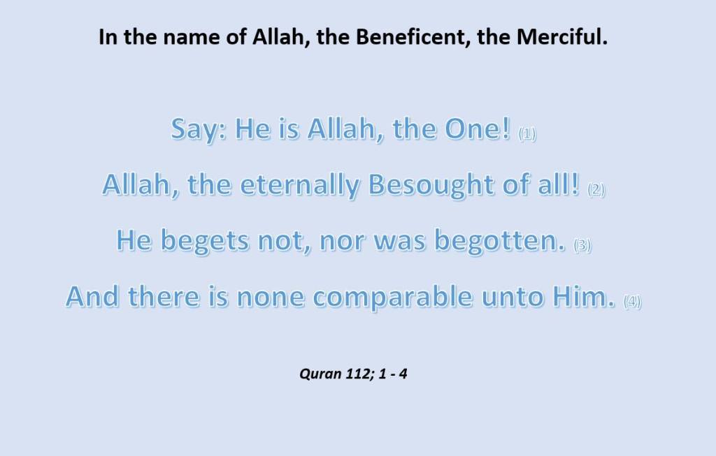 Declaring that GOD begets not, nor is He begotten is such an evident principle for the Uniqueness of Allah and its mentioning here refutes all creeds that attribute sons or daughters to GOD. It primarily and categorically refutes the pagans attribution to Him of the angels as daughters and the Christians’ seeing Him as the Father of Jesus عَلَيْهِ السَّلاَمُ , or their saying that Jesus عَلَيْهِ السَّلاَمُ is the son of GOD; as well as claims of some that GOD came in a person called Fard Mohammad. That is Shirk – a negation of true belief in Allah. Allah has no need of help in any way. He is The Creator and Sustainer of all that exists.