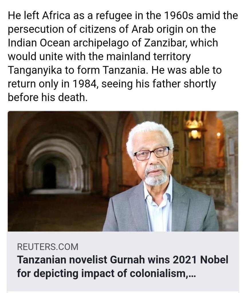 Novelist Gurnah wins Nobel Prize 2021 in Literature https://youtu.be/rQ15IvB96R4