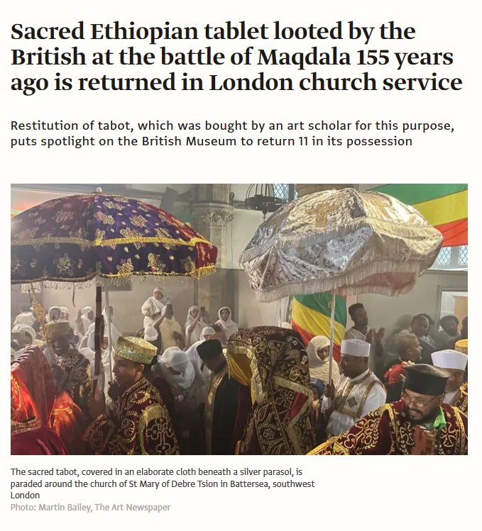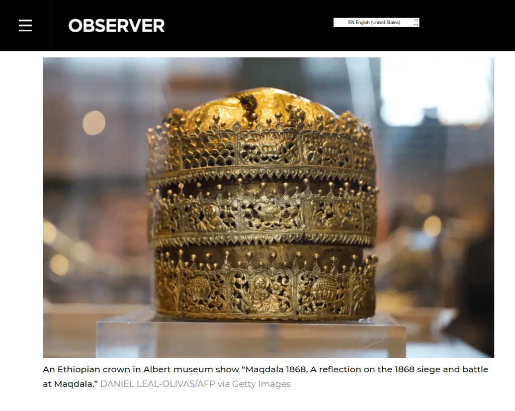BY ALEX GREENBERGER, September 10, 2021, ArtNews https://www.artnews.com/art-news/news/maqdala-artifacts-ethiopia-restitution-england-1234603510/