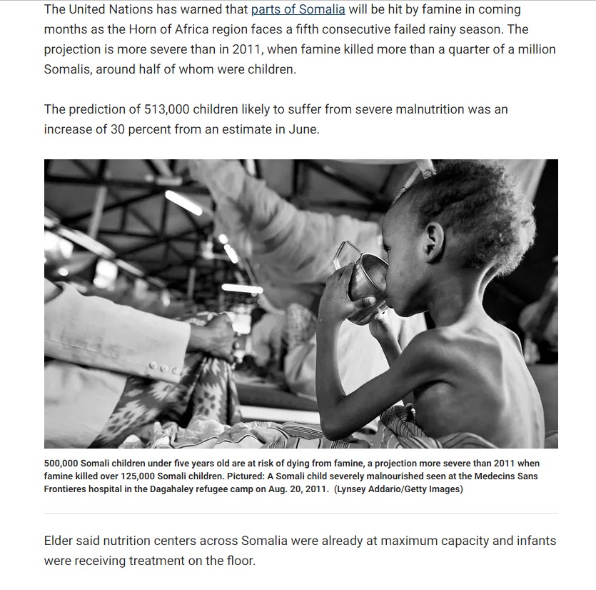 FOX NEWS – September 13, 2022 https://www.foxnews.com/world/half-a-million-somali-children-under-5-risk-dying-famine
