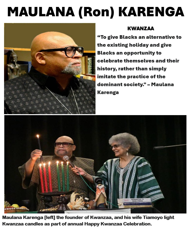 Karenga, a professor and chairman of Africana studies at the University of California-Long Beach, created Kwanzaa in 1966 as a way to bring African Americans together after the Watts riots.