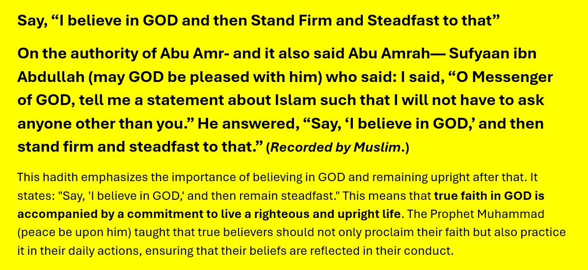 * Faith in GOD means believing firmly in His Existence, Lordship and Divinity, and in His Names and Attributes.